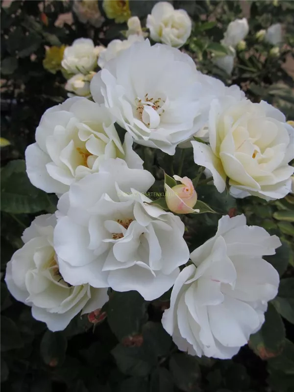 Strauchrose 'Weiße Wolke'®(s) ist ein buschig und aufrecht wachsender Strauch, der eine Höhe von 1 - 1,2 m und eine Breite von 60 - 70 cm erreichen kann.