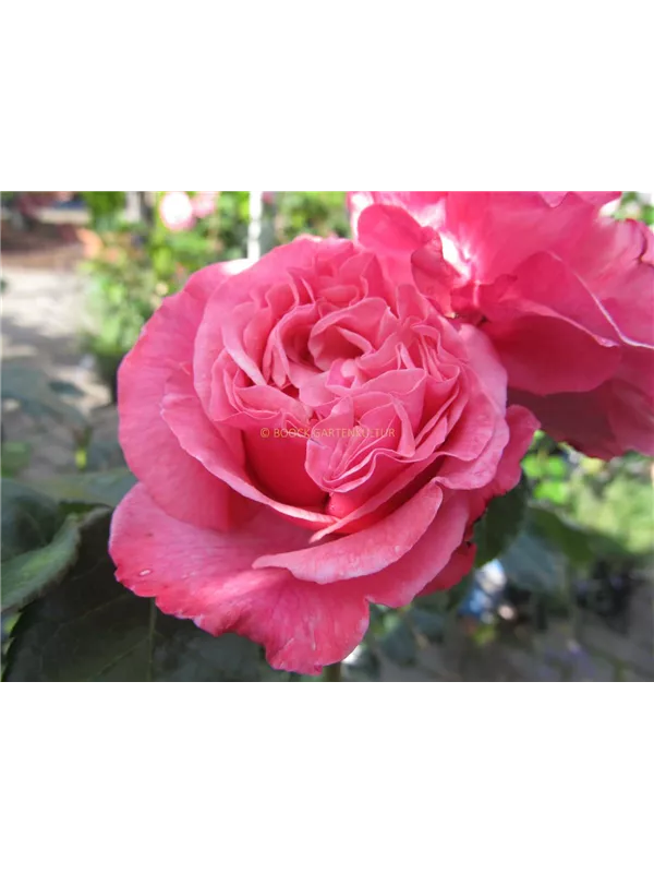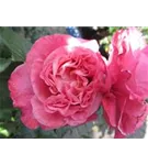 Die dunkelrosafarbenen, schalenförmigen Blüten sind gefüllt und erscheinen von Juni bis Oktober. Diese werden etwa 8 - 10 cm groß und sind stark duftend.