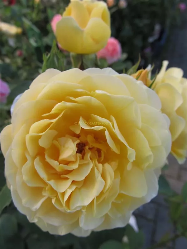 Die gelben, schalenförmigen Blüten sind gefüllt und erscheinen von Juni bis Oktober. Diese sind angenehm duftend.