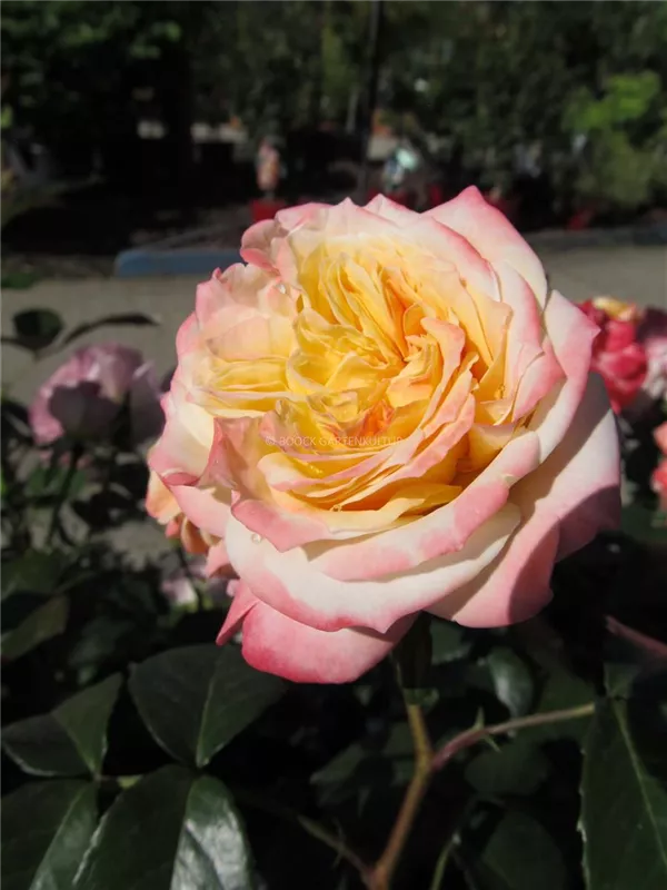 Edelrose Paramount® 'Elaine Paige' ist ein buschig, aufrecht und kompakt wachsender Kleinstrauch, der eine Höhe von 40 - 60 cm und eine Breite von 30 - 50 cm erreichen kann.
