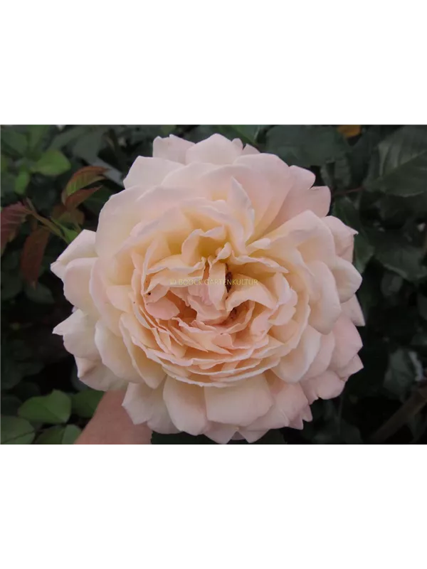 Die apricotfarbenen, schalenförmigen Blüten sind starkgefüllt und erscheinen von Juni bis Oktober. Diese werden etwa 8 - 10 cm groß und sind stark duftend.