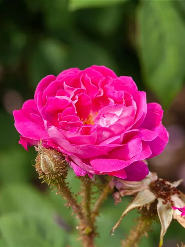 Die Triebe von Rosa x centifolia 'William Lobb' sind bestachelt.