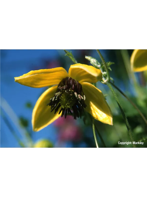 Synonyme (botanisch): Clematis tangutica 'Kugotia', Clematis serratifolia 'Golden Tiara'®.