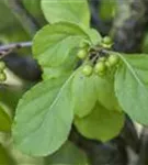 Die sommergrünen Blätter des Rotblättrigen Baumwürgers sind hellgrün, rundlich. Rotblättriger Baumwürger zeigt sich leuchtend gelb im Herbst.