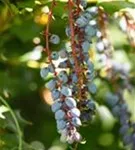 Besonders dekorativ sind die blau-grauen, ovalen Früchte von Mahonia aquifolium. Diese erscheinen ab Juli.