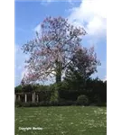 Blauglockenbaum ist ein breit und rundlich wachsender Kleinbaum mit lockerer Krone. Er erreicht gewöhnlich eine Höhe von 8 - 15 m und wird ca. 8 - 15 m breit. In der Regel wächst er 40 - 50 cm pro Jahr.