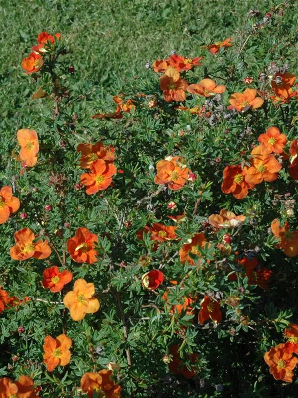 Fingerstrauch 'Red Ace' ist ein buschig und breit wachsender Zwergstrauch. Er erreicht gewöhnlich eine Höhe von 50 - 60 cm und wird ca. 1 - 1,2 m breit. In der Regel wächst er 5 - 15 cm pro Jahr.
