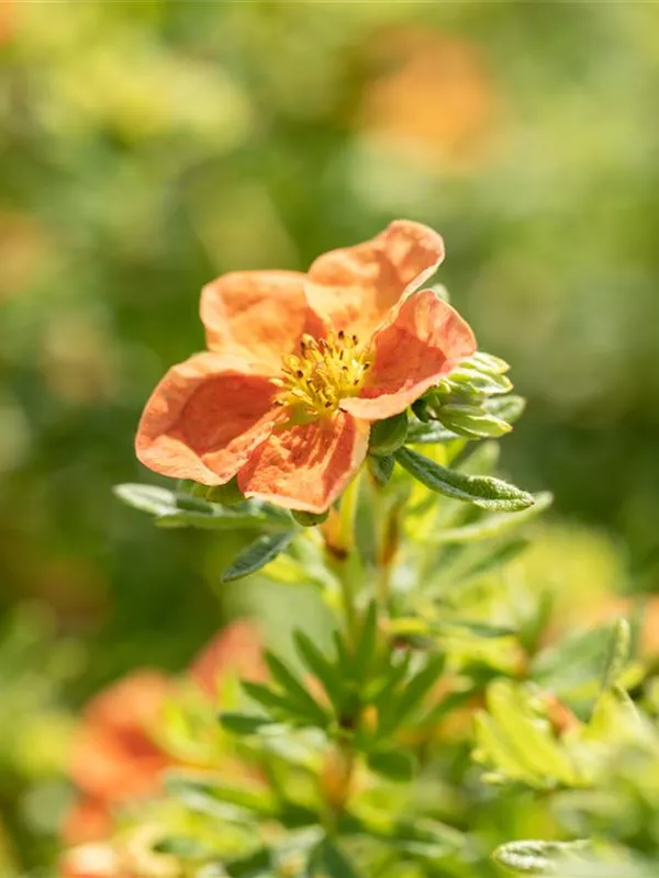 Potentilla fruticosa 'Red Ace' ist ein Flachwurzler und bildet, je nach Boden, fein verzweigte Wurzeln.