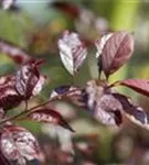 Die sommergrünen Blätter der Zierpflaume 'Trailblazer' sind grün-rot, eiförmig, wechselständig. Diese sind etwa 5 - 7 cm groß. Bronzefarbener Austrieb. Zierpflaume 'Trailblazer' zeigt sich leuchtend dunkelrot im Herbst.