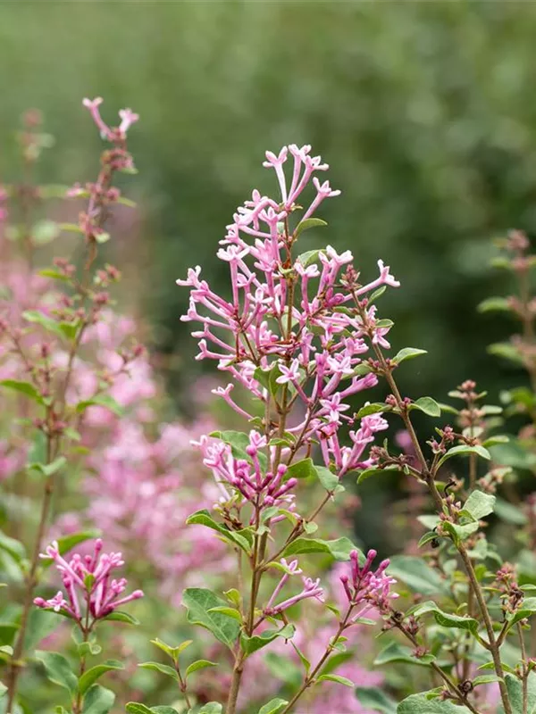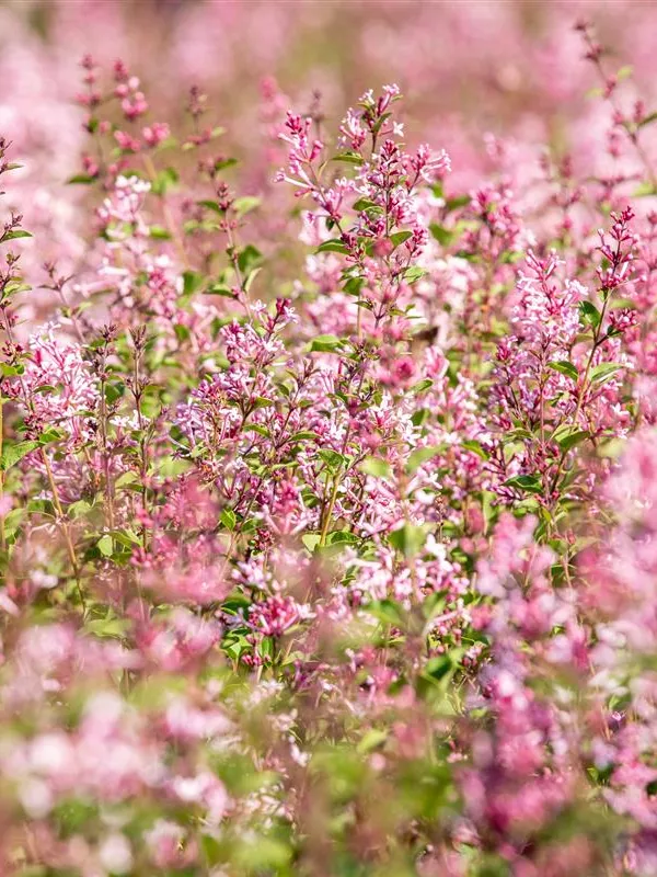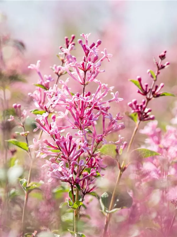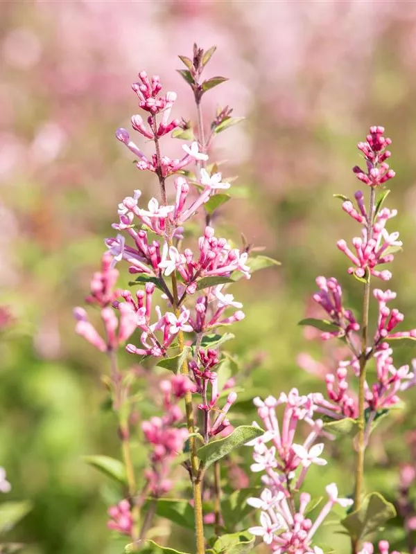 Die rosafarbenen, röhrenförmigen Blüten der Edelflieder Bloomerang® 'Pink Perfume'(s) erscheinen in Dolden von Mai bis Oktober. Diese sind angenehm duftend.