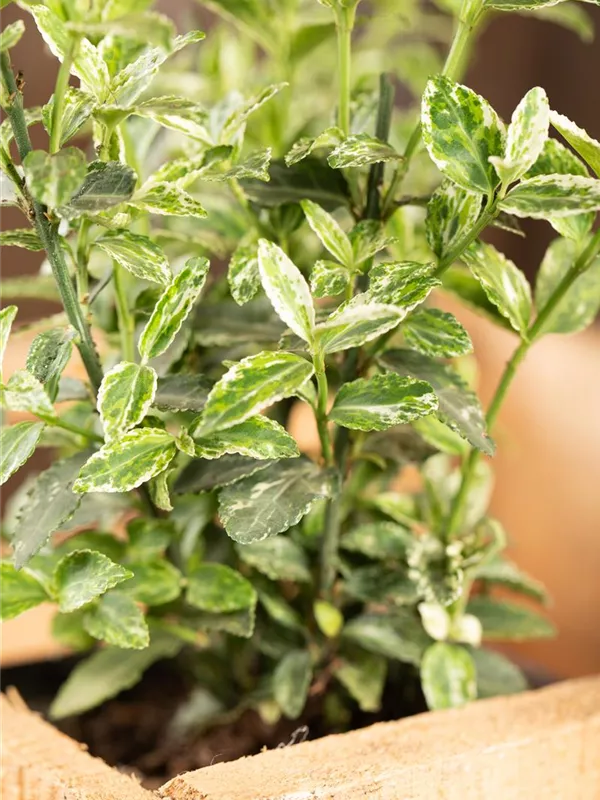 Die Kriechspindel 'Harlequin' weist eine gute Frosthärte auf.