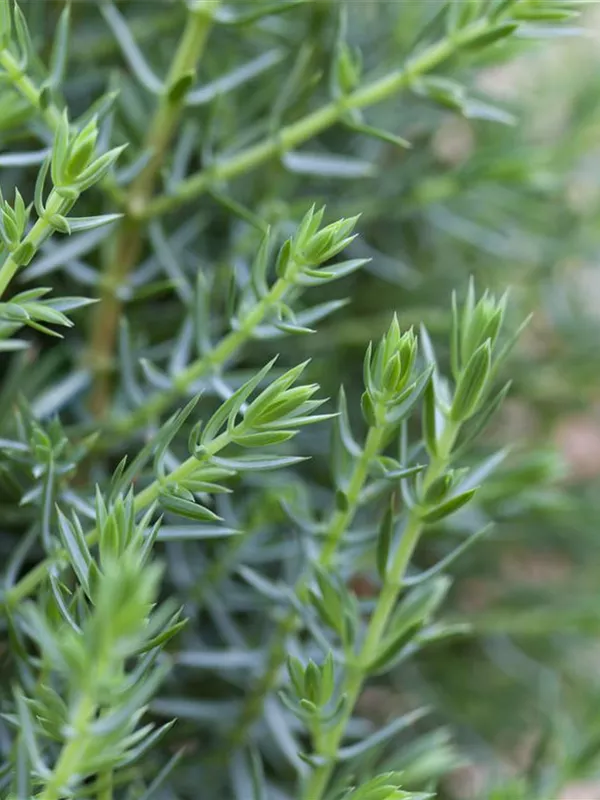 Der Wildwacholder 'Arnold' ist immergrün. Seine Nadeln sind grau-grün, stechend.