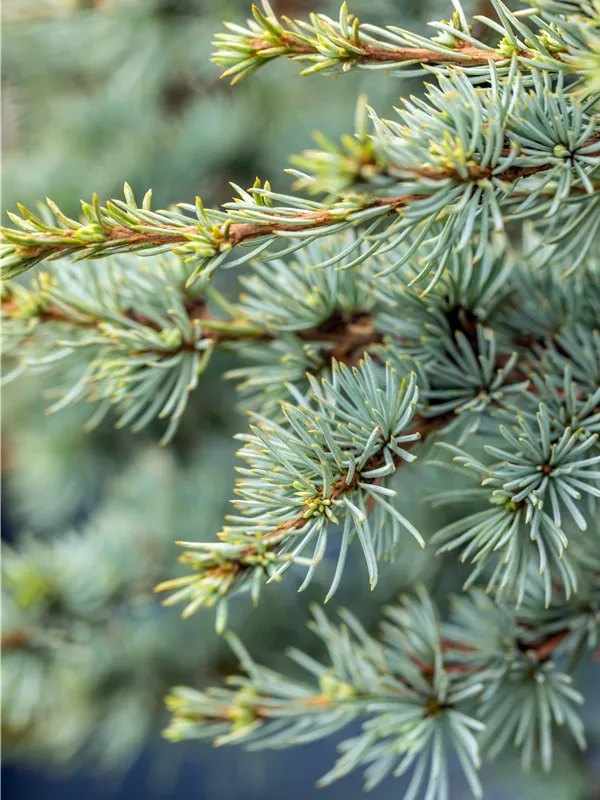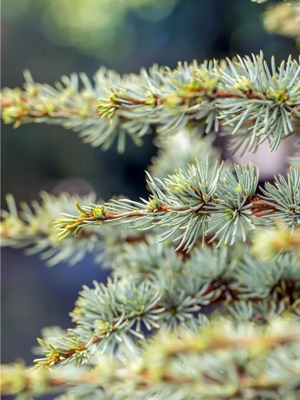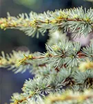 Die Atlaszeder 'Saphire Nymph' ist immergrün. Ihre Nadeln sind blau-grau. Silberweißer Austrieb.