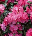 Rhododendron yakushimanum 'Karminkissen'® bildet von Mai bis Anfang Juni zahlreiche trichterförmige, karminrote Blüten.