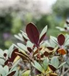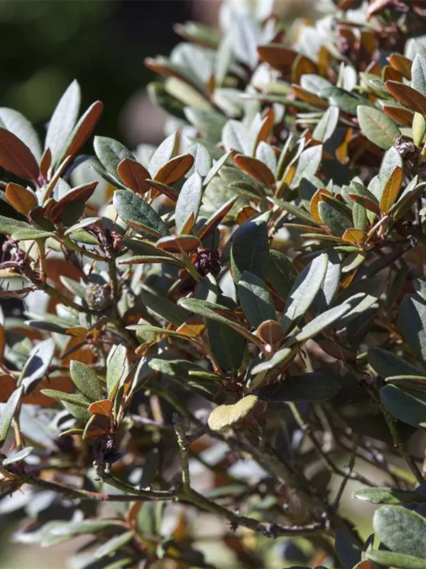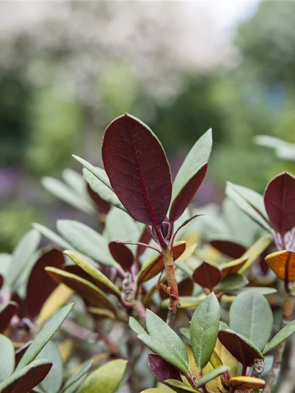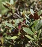 Hoher Blattschmuckwert. Der Rhododendron neriiflorum 'Burletta' trägt dekorative, lanzettliche, dunkelgrüne Blätter.