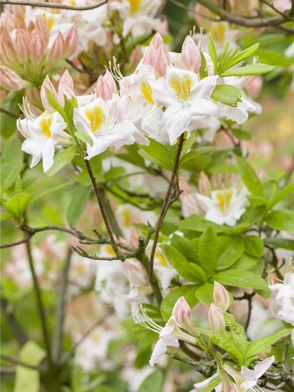 Die Sommergrüne Azalee 'Persil' weist eine gute Frosthärte auf.
