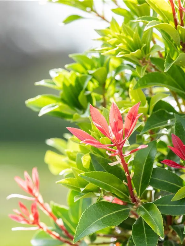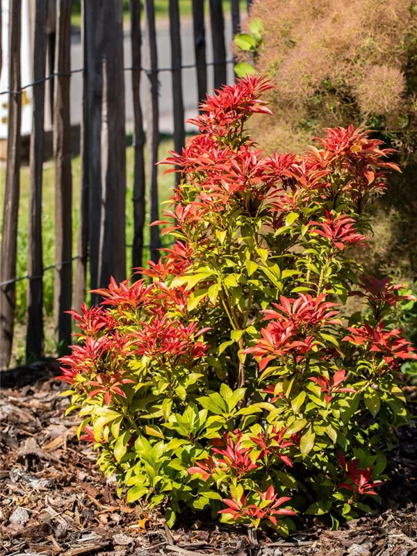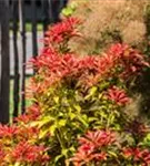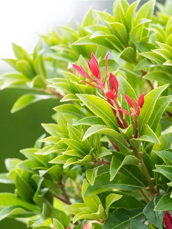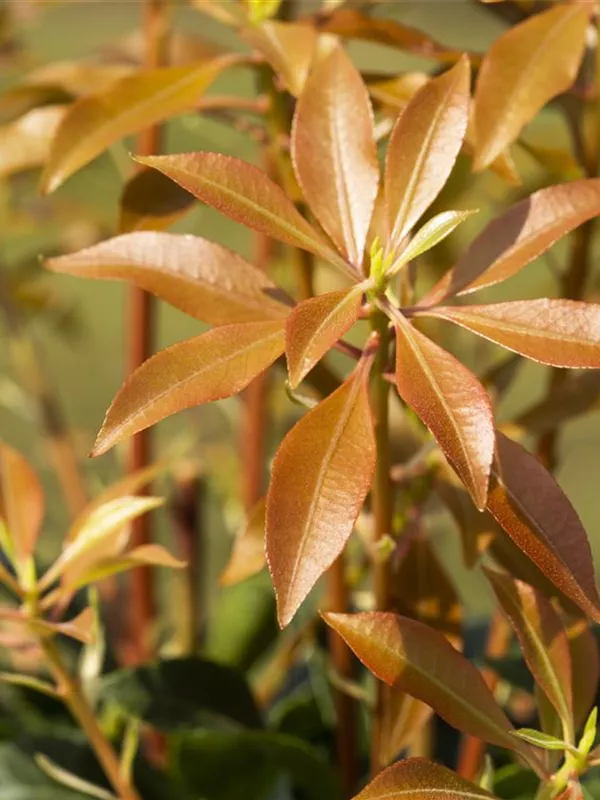 Pieris japonica 'Mountain Fire' ist ein Flachwurzler und bildet, je nach Boden, fein verzweigte Wurzeln.