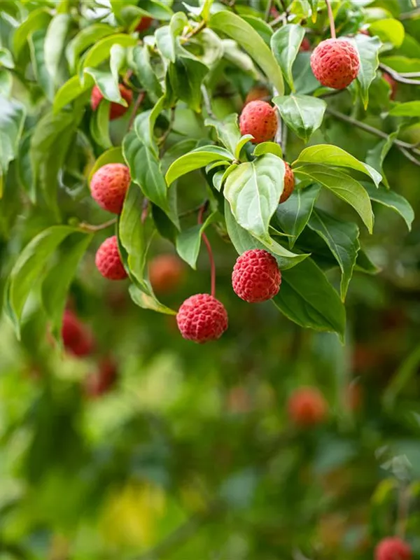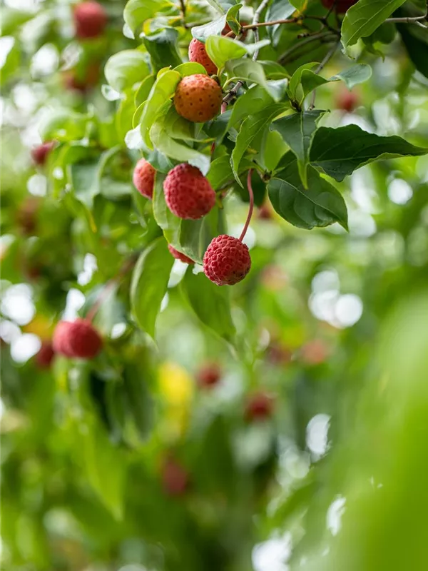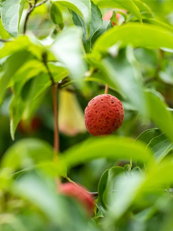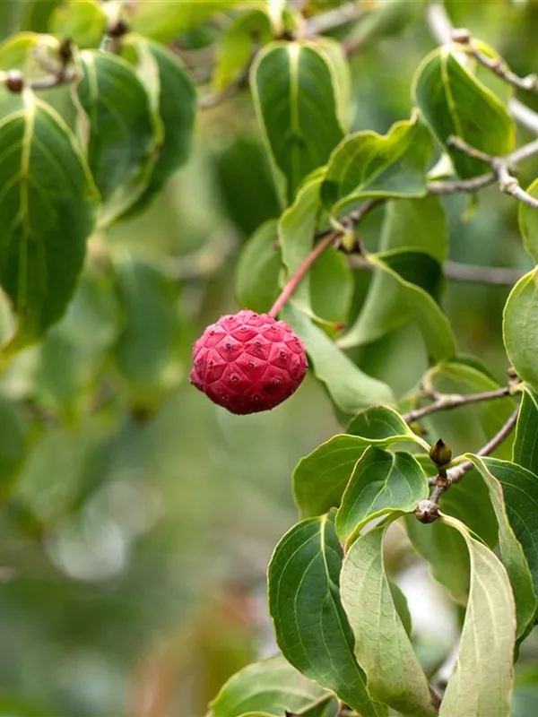 Besonders dekorativ sind die, runden Beeren von Cornus kousa 'Eurostar'. Diese erscheinen ab September.