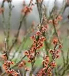 Die kupferbraunen Blüten erscheinen von März bis April.