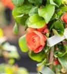 Die sommergrünen Blätter der Zierquitte 'Orange Storm' sind mittelgrün, lanzettlich, wechselständig.