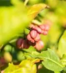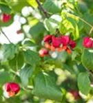 Besonders dekorativ sind die rosaroten Früchte von Euonymus europaeus. Diese erscheinen ab August.