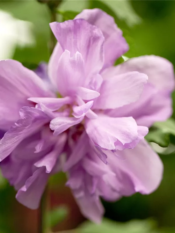 Die lilafarbenen, schalenförmigen Blüten sind halbgefüllt und erscheinen von Juli bis September. Diese werden etwa 9 - 10 cm groß.
