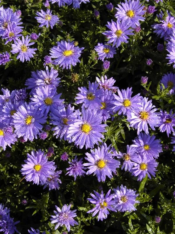 Aster dumosus 'Prof. Anton Kippenberg' bildet körbchenartige, blauviolette Blüten ab September. Diese verströmen einen angenehmen Duft.