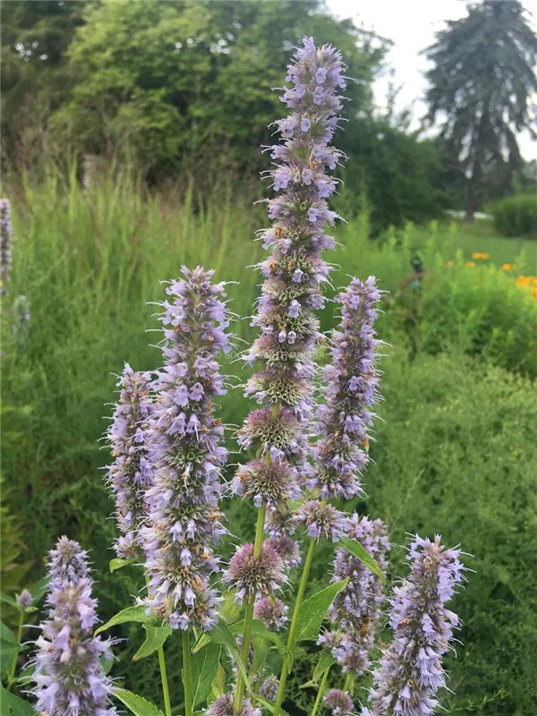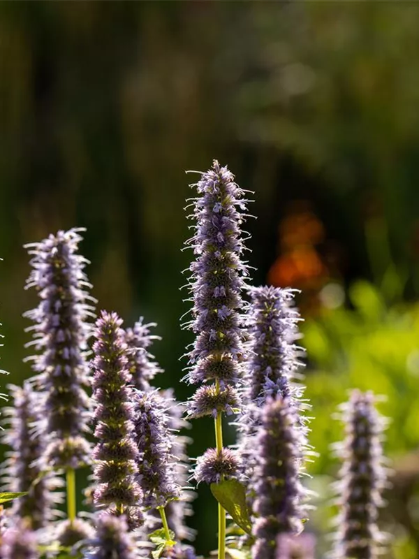 Agastache rugosa 'Blue Fortune' bildet lippenförmige, in Ähren angeordnete, blauviolette Blüten ab Juli. Diese verströmen einen angenehmen Duft.