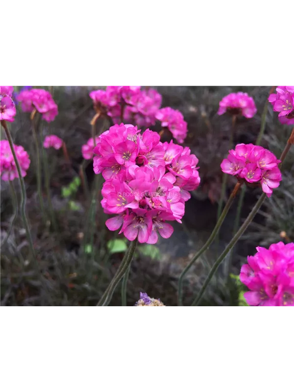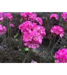 Armeria maritima 'Vesuv' bildet ballförmige, rote Blüten ab Mai.