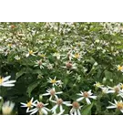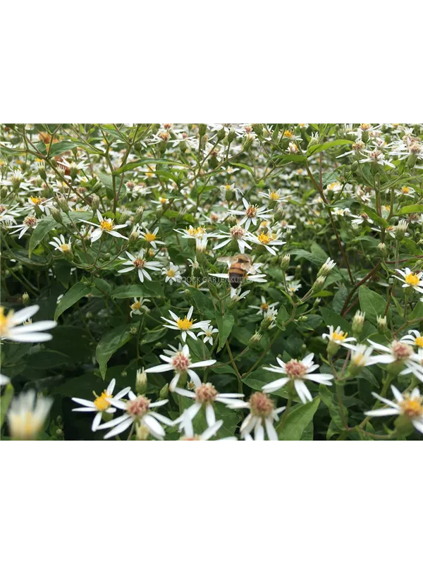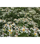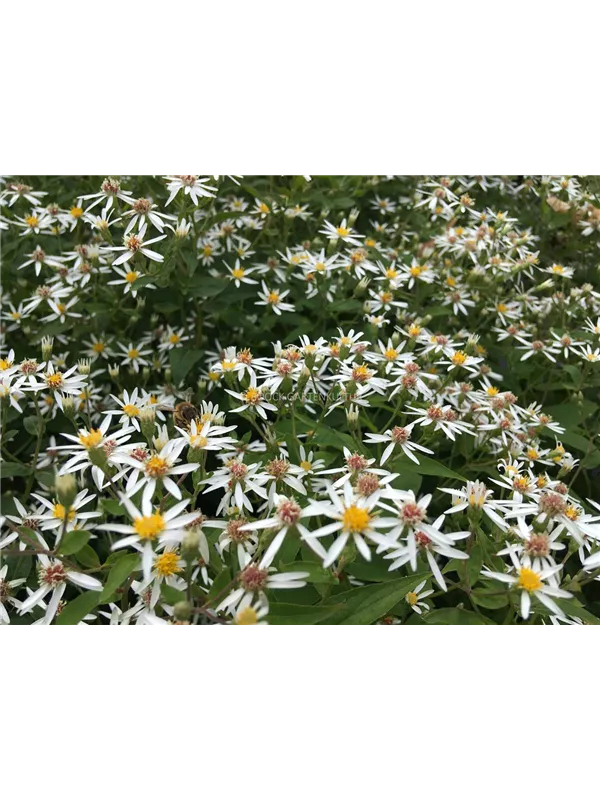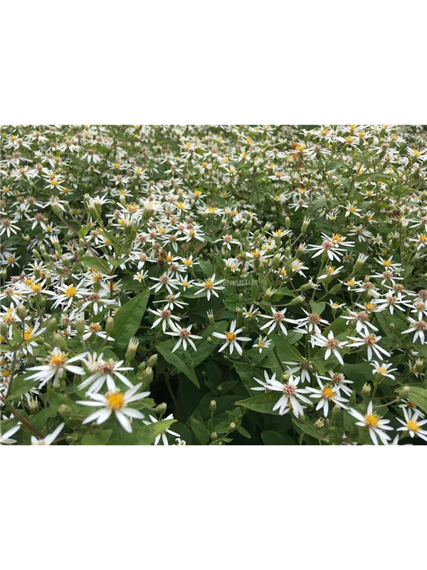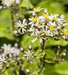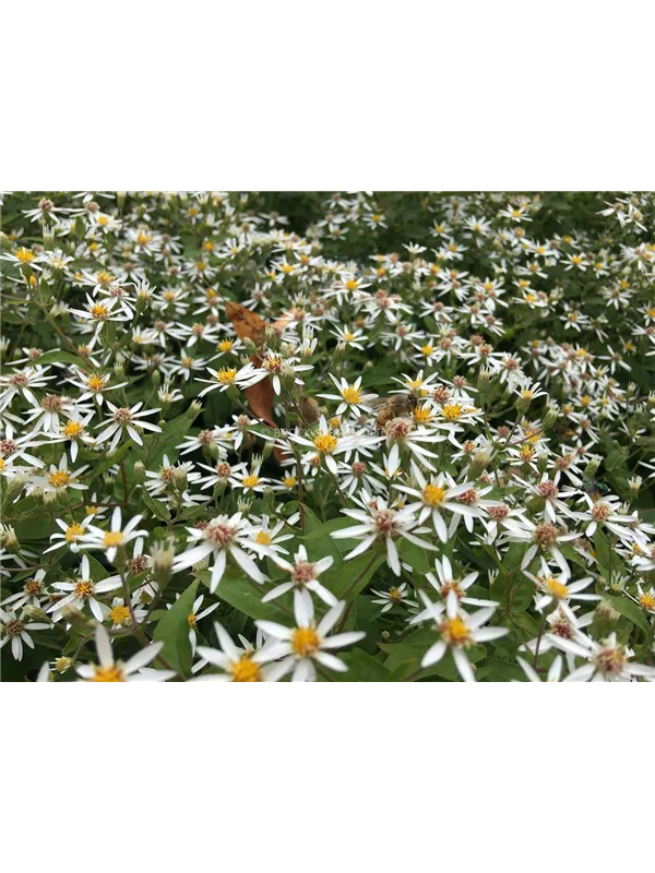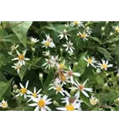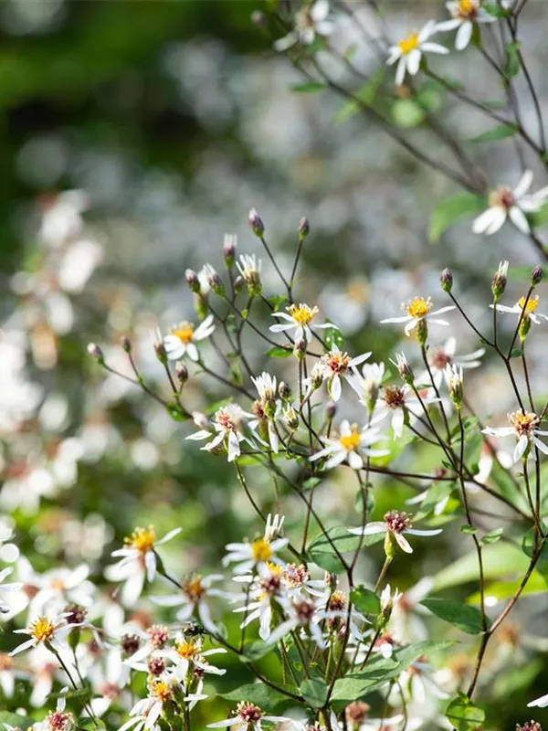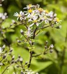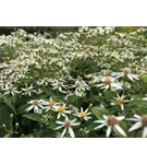 Aster divaricatus bildet sternförmige, in Dolden angeordnete, weiße Blüten ab August. Diese verströmen einen angenehmen Duft.
