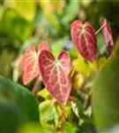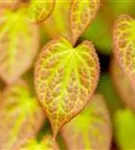 Die wintergrünen Blätter der Schwefelgelbe Garten-Elfenblume 'Sulphureum' sind dunkelgrün, herzförmig. Roter Austrieb. Mit seinem bronzefarbenen Laub setzt sie schöne Akzente im Winter.