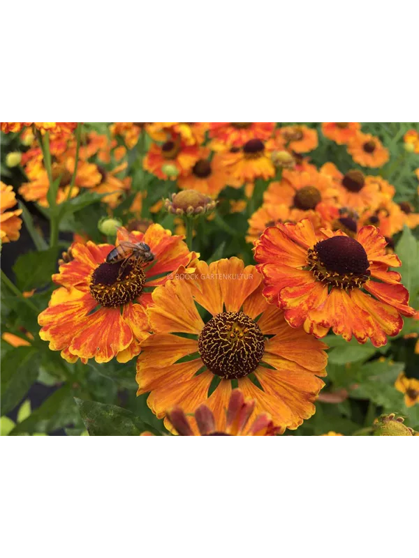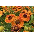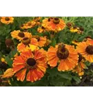 Helenium 'Flamenco' bildet körbchenartige, gelb-rote Blüten ab Juli.