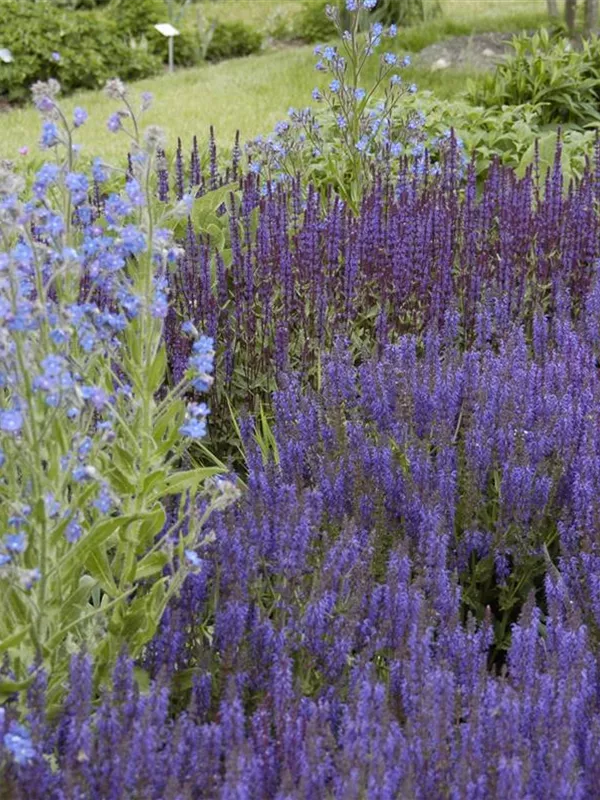 Garten-Blüten-Salbei 'Wesuwe' ist auch unter diesem Namen bekannt: Sommer-Salbei oder Hain-Salbei.
