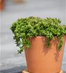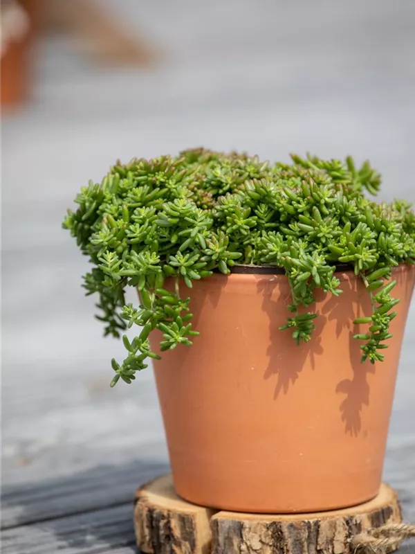 Sedum album 'Coral Carpet' bildet in Dolden angeordnete, weiße Blüten ab Juni.