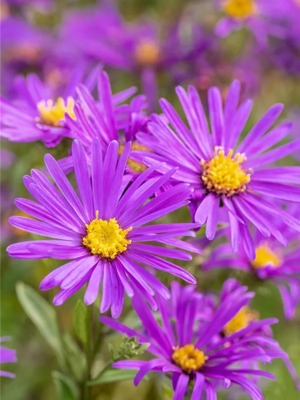 Aster amellus 'Veilchenkönigin' bildet körbchenartige, violette Blüten ab Juli. Diese verströmen einen angenehmen Duft.