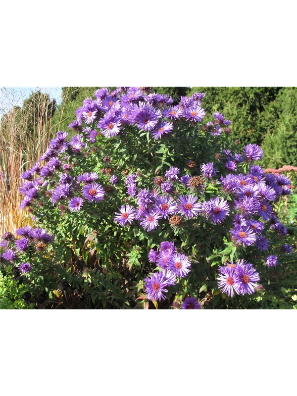 Die Garten-Raublatt-Aster 'Purple Dome' setzt schöne Akzente gemeinsam mit: