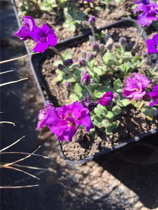 Aubrieta x cultorum 'Sauerland' bildet gefüllte, radförmige, blauviolette Blüten ab April.