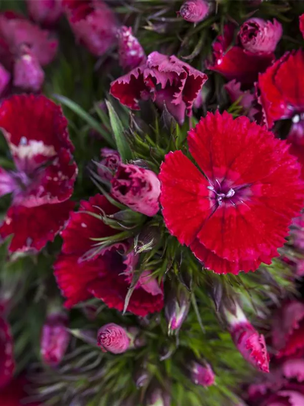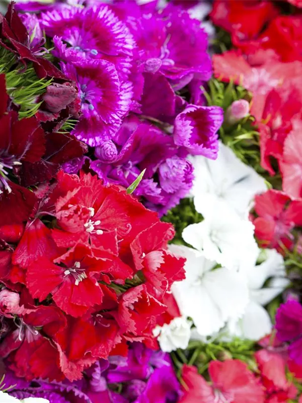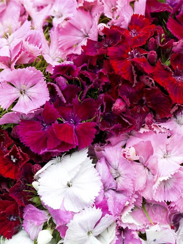 Je nach Sorte, bildet Dianthus barbatus radförmige Blüten in verschiedenen Farben. Diese sind angenehm duftend.