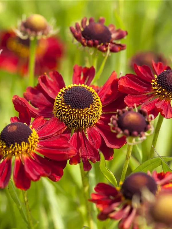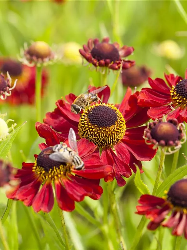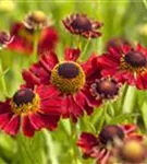 Helenium 'Rubinzwerg' bildet körbchenartige, rote Blüten ab Juni.
