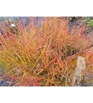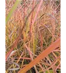 Die sommergrünen Blätter des Garten-Chinaschilfs 'Sioux' sind mittelgrün, lineal. Garten-Chinaschilf 'Sioux' zeigt sich leuchtend orange-rot im Herbst.