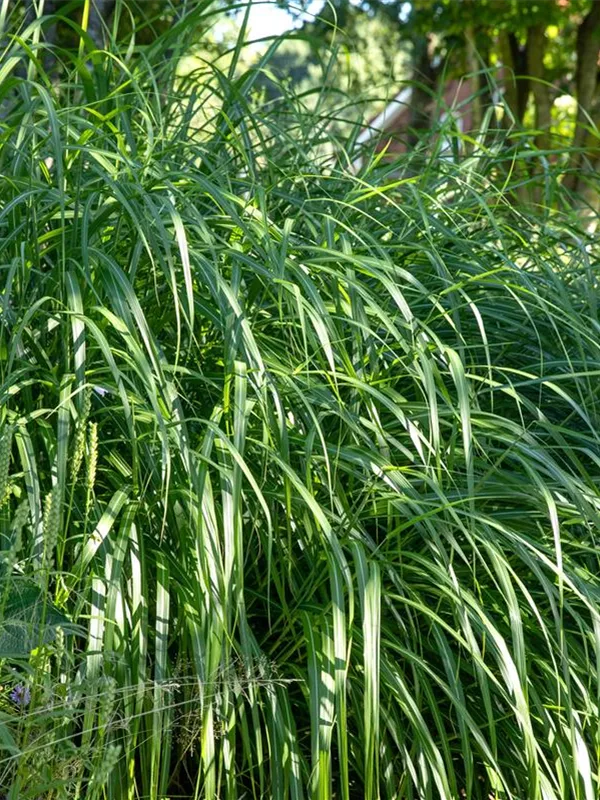 Die sommergrünen Blätter des Garten-Chinaschilfs 'Malepartus' sind mittelgrün, lineal. Garten-Chinaschilf 'Malepartus' zeigt sich leuchtend kupferbraun im Herbst.