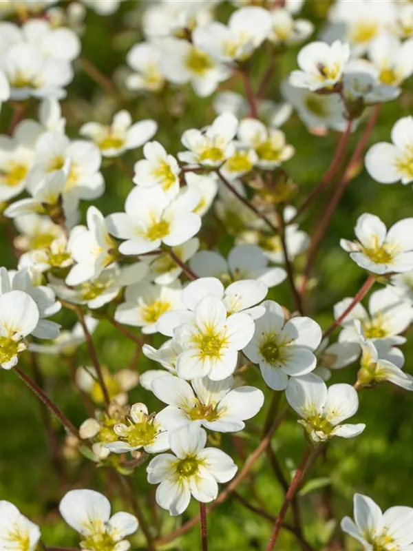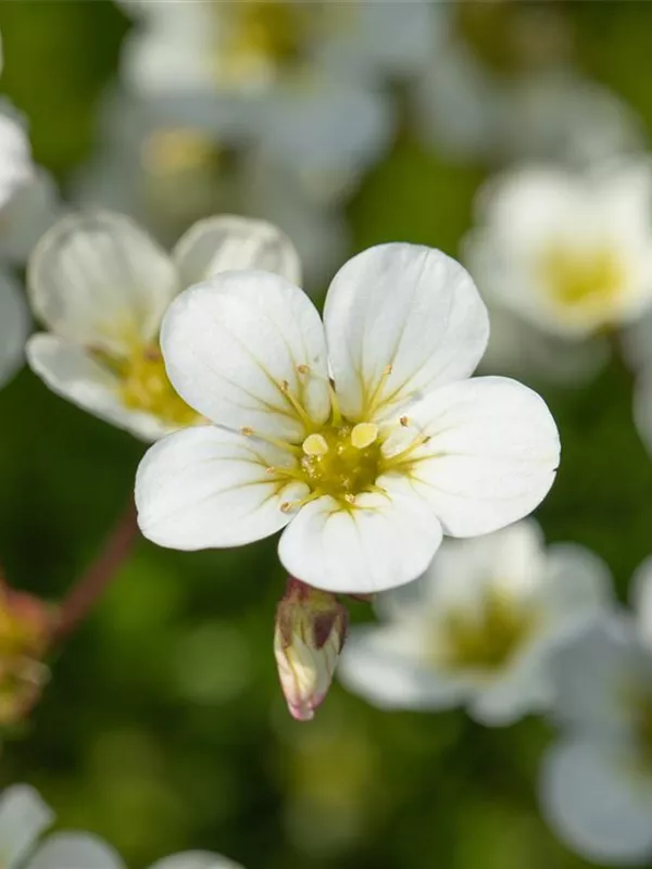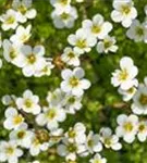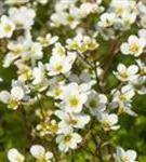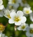 Saxifraga x arendsii 'Adebar' bildet schalenförmige, weiße Blüten ab April.