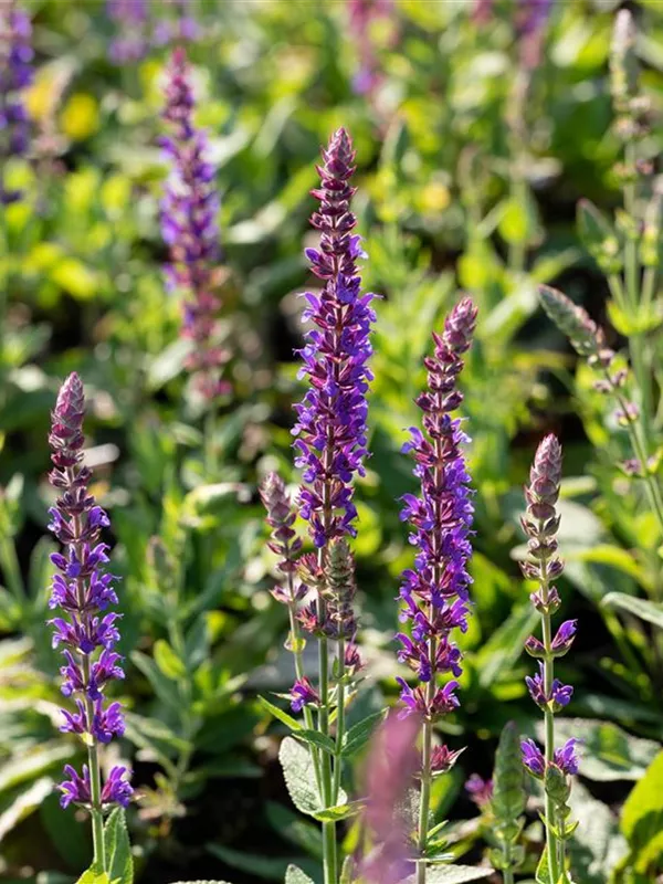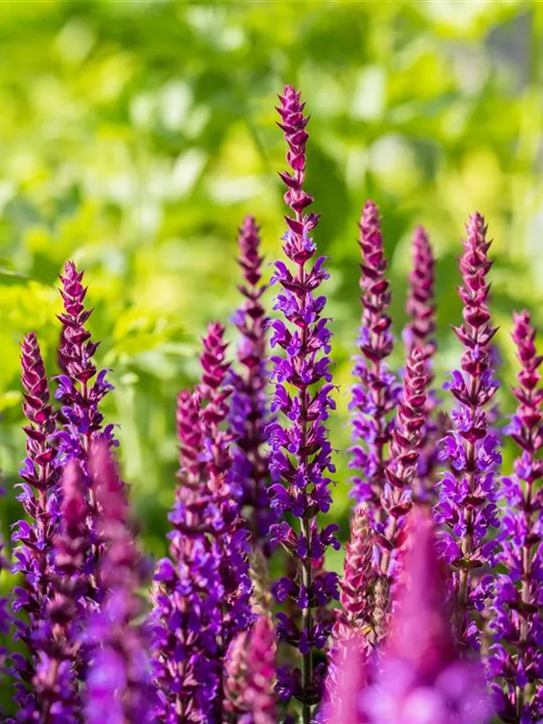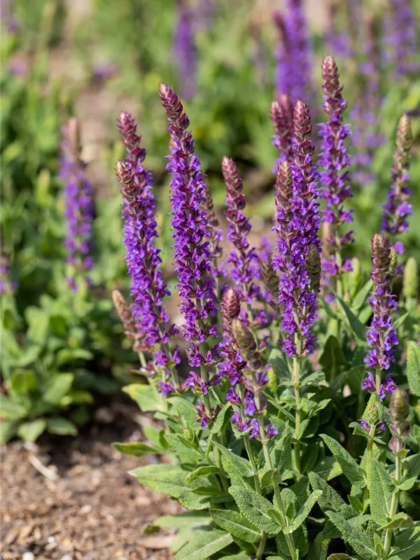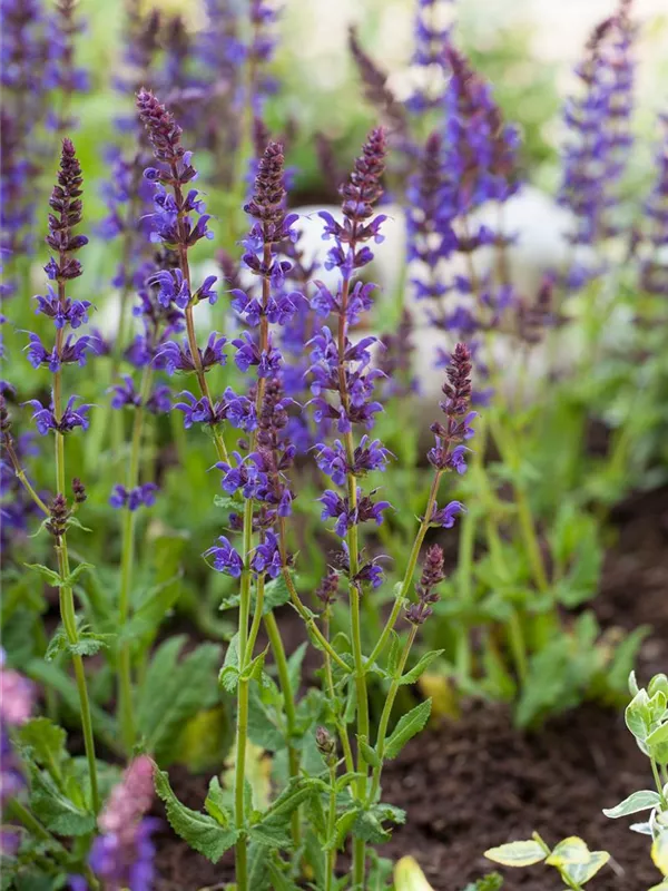 Garten-Blüten-Salbei 'Ostfriesland' ist auch unter diesem Namen bekannt: Sommer-Salbei oder Hain-Salbei.
