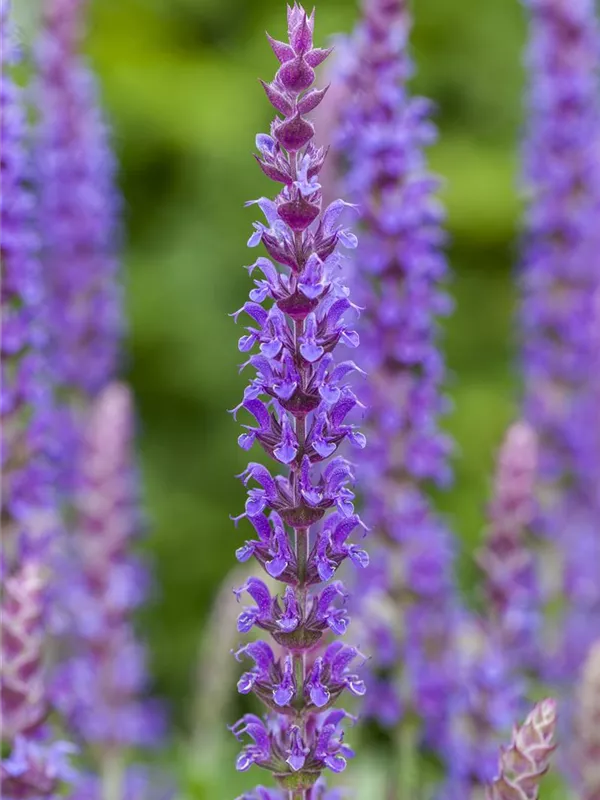 Salvia nemorosa 'Ostfriesland' bildet lippenförmige, in Rispen angeordnete, violette Blüten ab Juni. Diese werden etwa 5 - 10 cm groß. Bei richtiger Pflege Nachblüte im September.