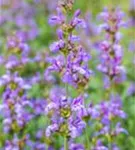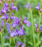 Salvia officinalis 'Grete Stölzle' bildet lippenförmige, blaue Blüten ab Juni.
