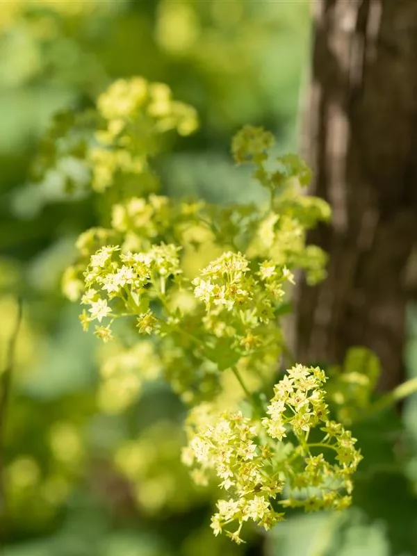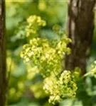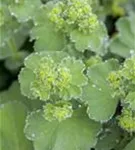 Alchemilla mollis bildet in Doldentrauben angeordnete, gelb-grüne Blüten ab Juni.