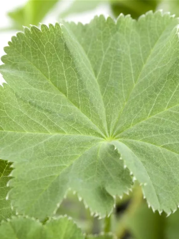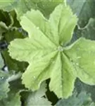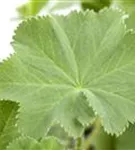 Die sommergrünen Blätter des Großblättrigen Frauenmantels sind grau-grün, rundlich, gelappt.