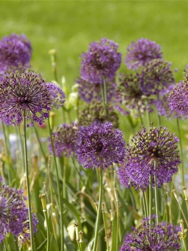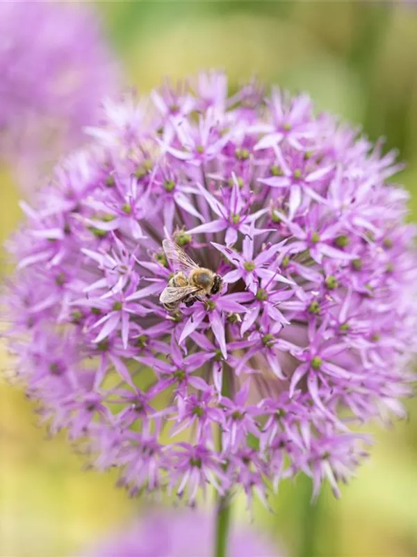 Die violetten Blüten des Riesenlauch erscheinen in Dolden von Mai bis Juli.