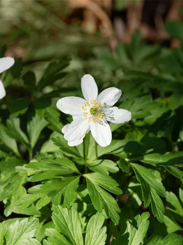 Die sommergrünen Blätter des Busch-Windröschens sind mittelgrün, dreizählig.