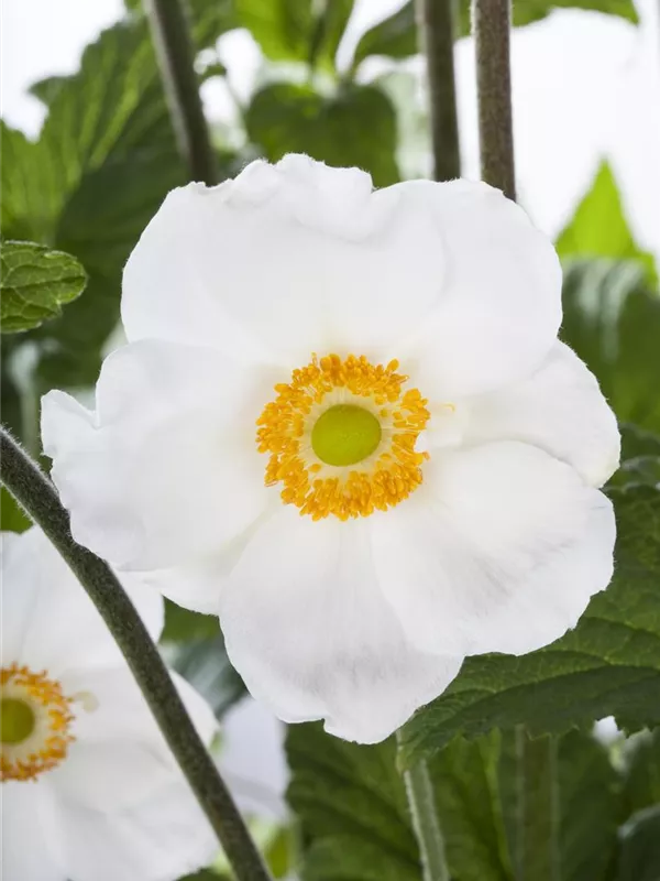 Die weißen, schalenförmigen Blüten erscheinen von Mai bis Juni.